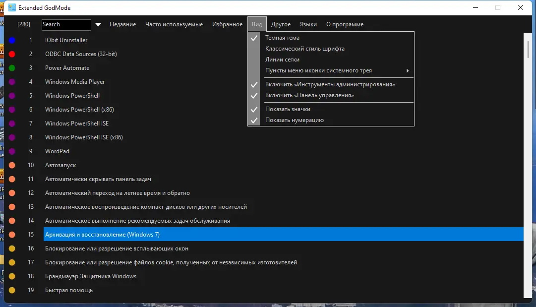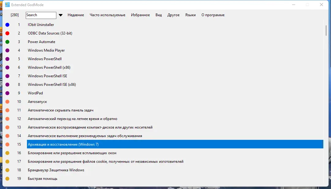 Использование Extended GodMode не требует специальных навыков. После запуска утилита отображает единый список доступных настроек, который можно фильтровать с помощью строки поиска. Пользователь может ввести ключевое слово, чтобы мгновенно найти нужный элемент, а затем сохранить этот запрос для последующего использования. Добавление настроек в избранное позволяет создавать персонализированные группы параметров, которые легко вызывать в дальнейшем. Быстрый доступ через значок в системном трее обеспечивает мгновенное открытие нужных разделов без открытия основного окна.