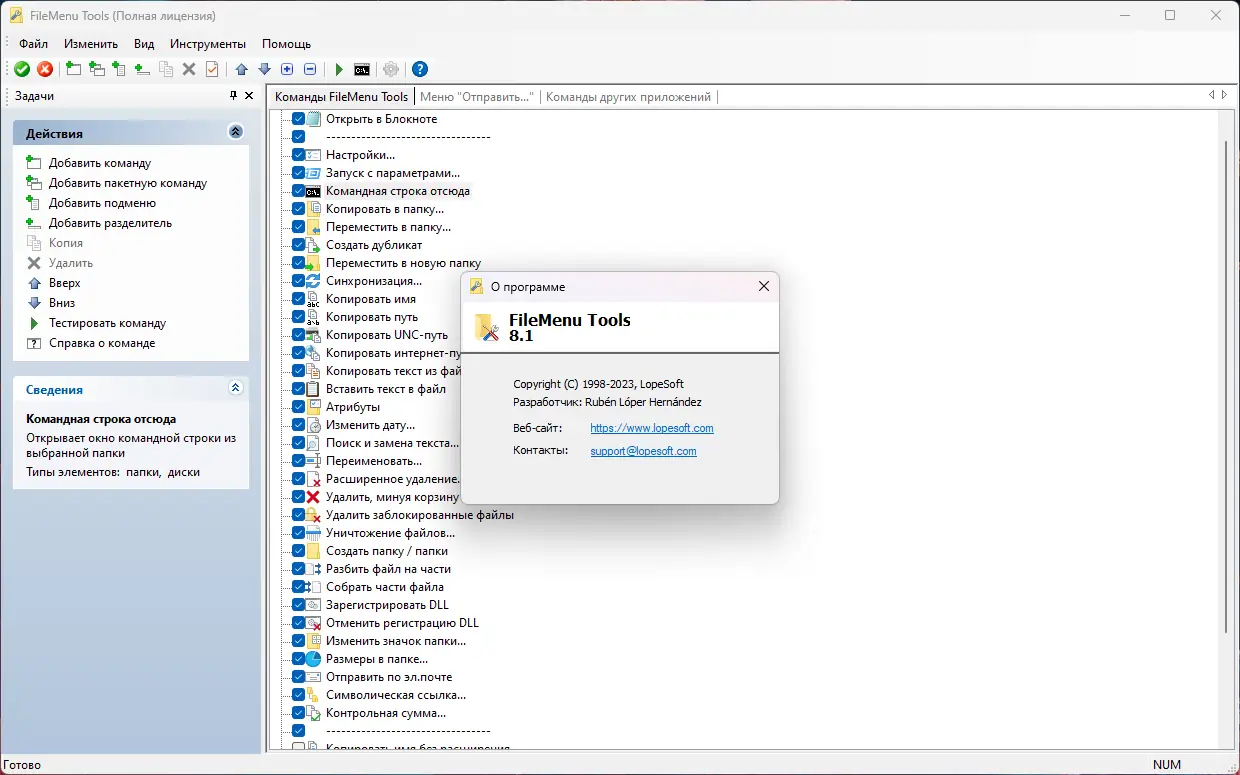 FileMenu Tools предоставляет полный контроль над контекстным меню операционной системы, позволяя адаптировать его под индивидуальные потребности пользователя. Программа поддерживает создание пользовательских команд, включение встроенных утилит и управление элементами, добавленными другими приложениями. Это делает её незаменимым помощником для тех, кто регулярно работает с файлами и стремится оптимизировать ежедневные операции.