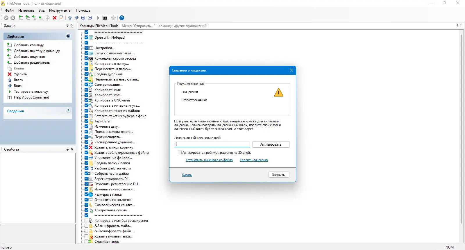 FileMenu Tools доступна для бесплатного использования с базовым функционалом, а расширенные возможности разблокируются при активации полной версии. Программа совместима с современными версиями Windows и поддерживает как 32-, так и 64-битные системы. Установка проста и не требует специальных знаний, а портативная версия позволяет запускать утилиту с флеш-накопителя без инсталляции.