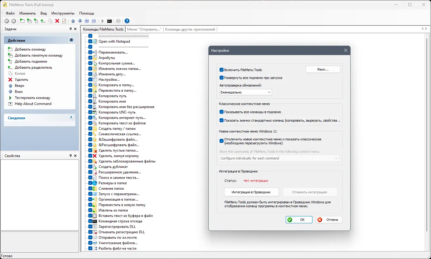 FileMenu Tools настраивает контекстное меню Проводника Windows, расширяя его встроенными и пользовательскими командами. Программа позволяет упорядочить, группировать и удалять элементы меню, добавляя полезные функции для работы с файлами и папками. С её помощью можно быстро выполнять рутинные операции, не запуская дополнительные приложения.
