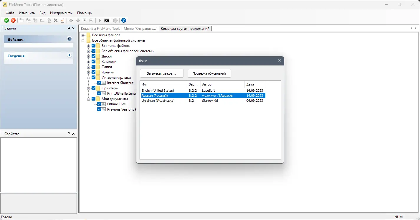 FileMenu Tools предлагает высокий уровень кастомизации и стабильную работу в фоновом режиме. Программа не замедляет систему и не потребляет значительные ресурсы, несмотря на широкий функционал. Утилита поддерживает как установку в систему, так и портативный режим, что делает её удобной для использования на разных компьютерах. Интерфейс переведён на множество языков, включая русский, что упрощает освоение.