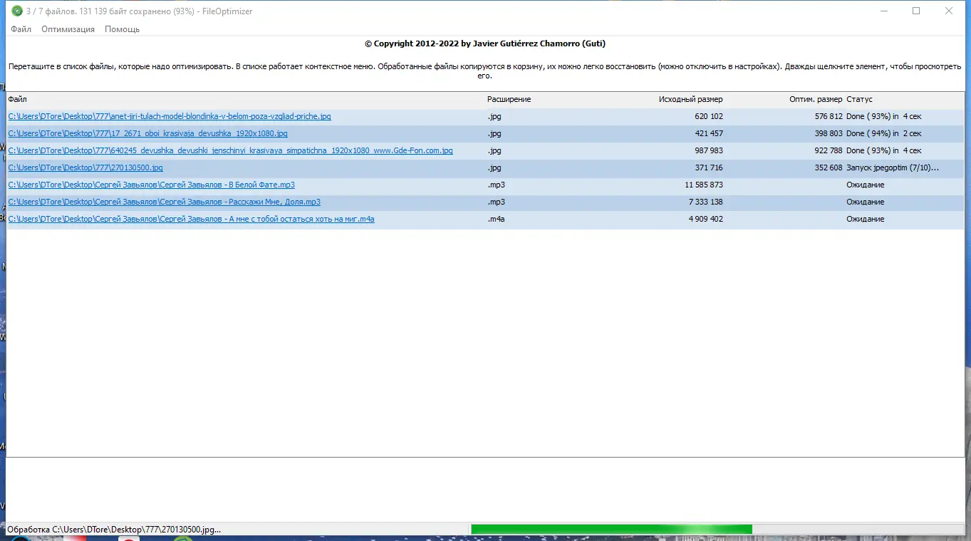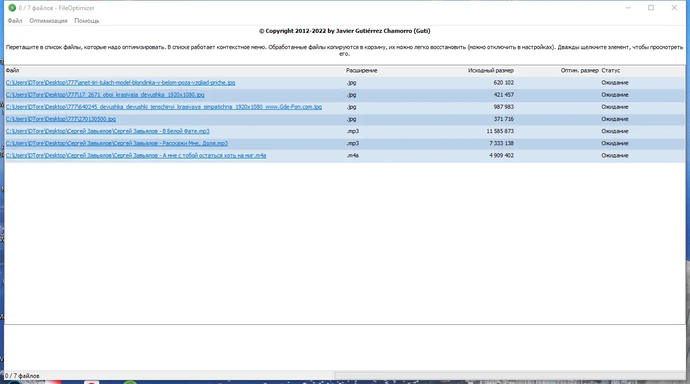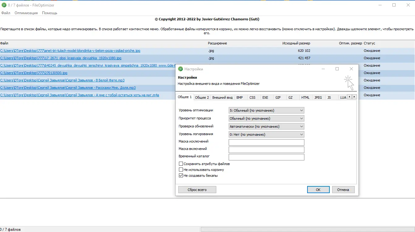 Работа с FileOptimizer