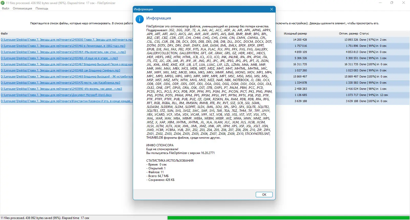 Описание FileOptimizer