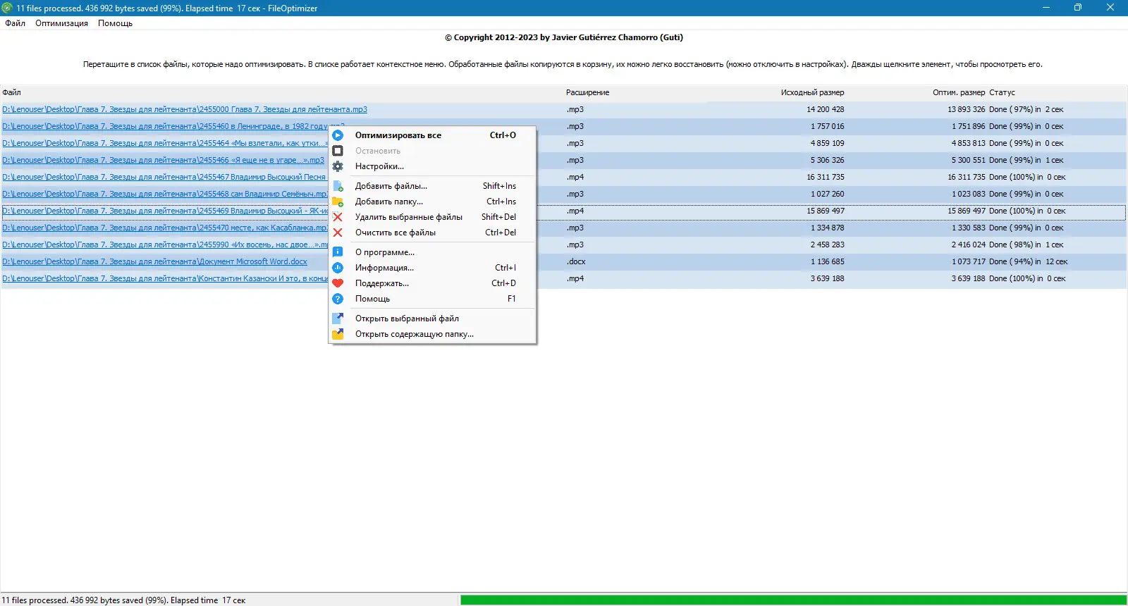 Как пользоваться FileOptimizer
