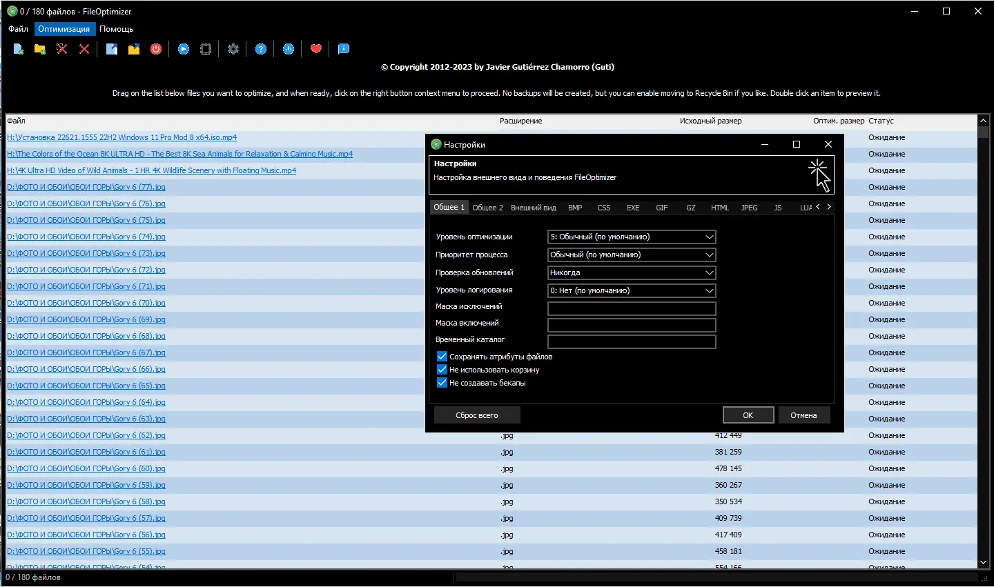 Несмотря на высокую эффективность, FileOptimizer не изменяет поведение или внешний вид файлов после обработки — всё остаётся в исходном состоянии, только размер становится меньше.