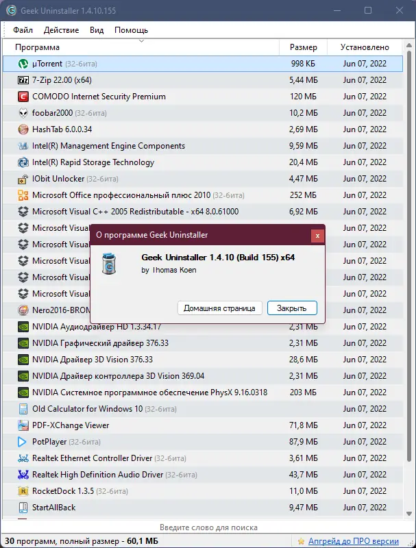 Geek Uninstaller сочетает минимализм интерфейса с высокой эффективностью, оставаясь при этом полностью портативным решением.