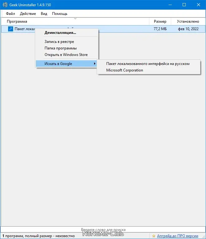 Работа с Geek Uninstaller