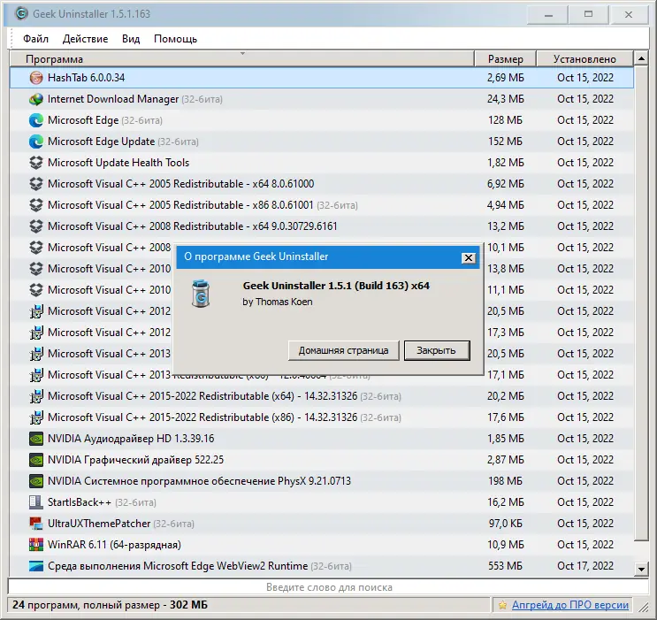 Geek Uninstaller — это компактный и эффективный инструмент для полного удаления программ с компьютера, работающий без установки и обеспечивающий глубокую очистку системы от остатков деинсталлированных приложений. Программа поддерживает как традиционные приложения, так и программы из Windows Store, обеспечивая стабильную работу системы после деинсталляции.