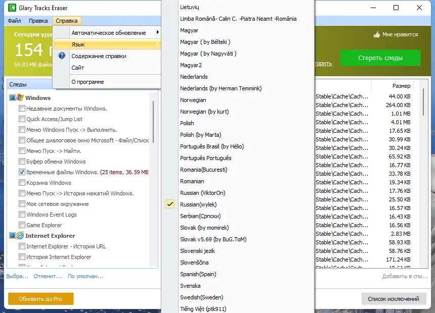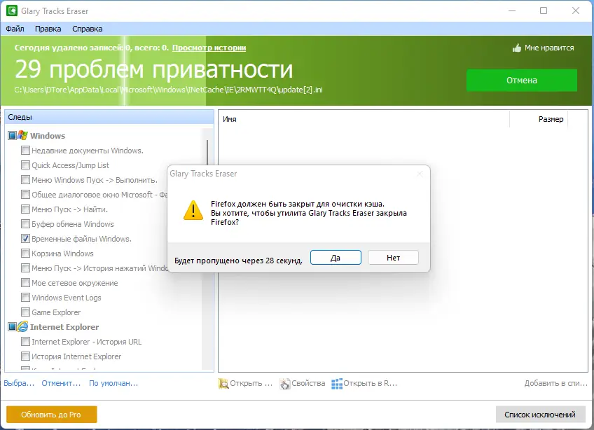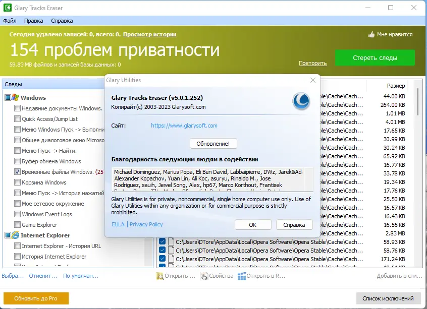 Работа с Glary Tracks Eraser