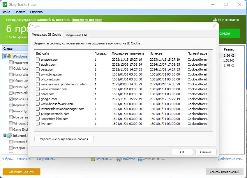 - Glary Tracks Eraser работает с популярными веб-браузерами, включая Google Chrome, Mozilla Firefox, Internet Explorer, Opera и Vivaldi, удаляя кеш, куки, историю поиска и сохранённые пароли.