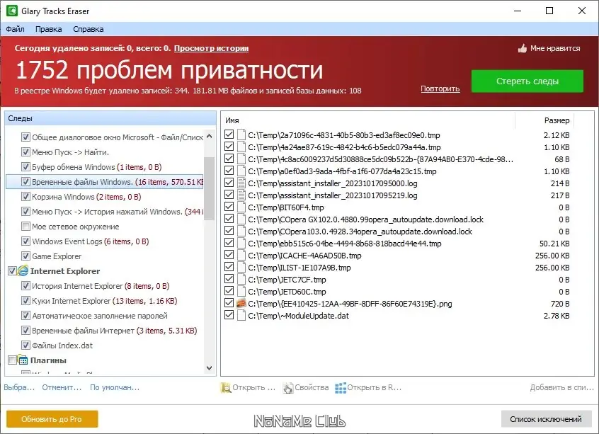Glary Tracks Eraser — это программа для очистки следов активности на компьютере, обеспечивающая защиту личных данных и конфиденциальность пользователя. Утилита эффективно удаляет временные файлы, историю действий в системе и браузерах, а также другие данные, которые могут раскрыть информацию о поведении пользователя. Инструмент поддерживает множество приложений и работает с различными языками интерфейса.