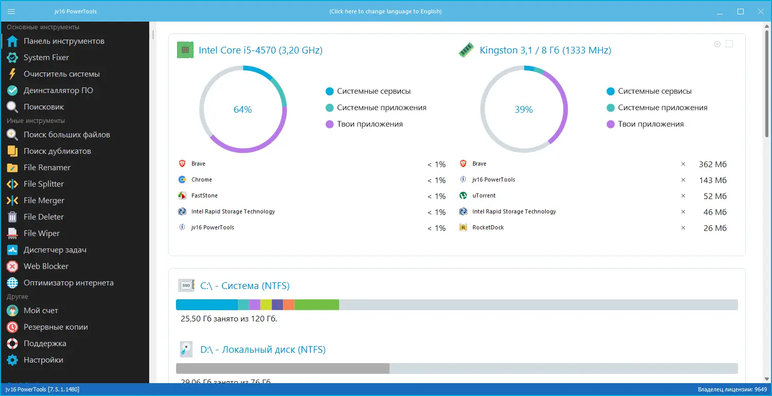 Благодаря интеграции множества специализированных утилит, jv16 PowerTools обеспечивает всестороннюю оптимизацию системы без необходимости установки дополнительного программного обеспечения.