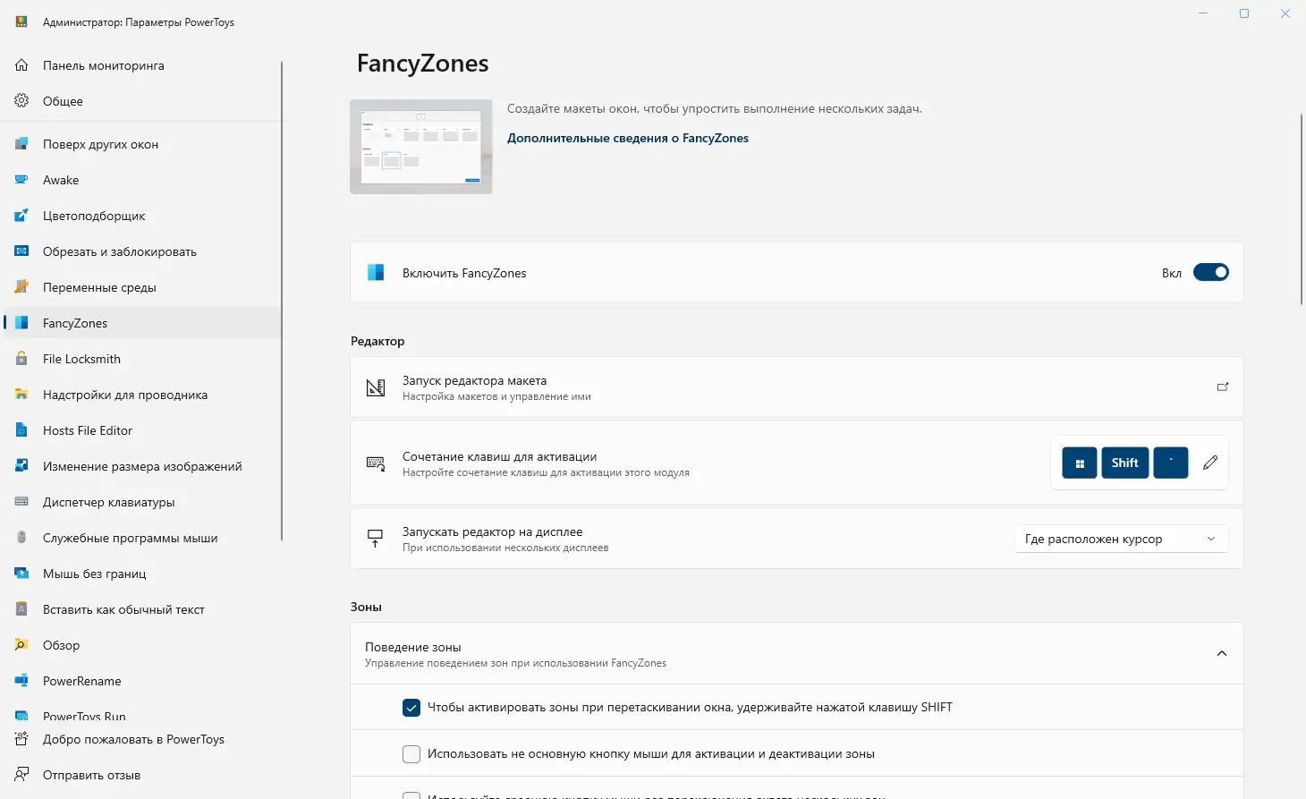 - FancyZones позволяет создавать сложные макеты размещения окон на экране, что особенно полезно при работе с несколькими приложениями одновременно.