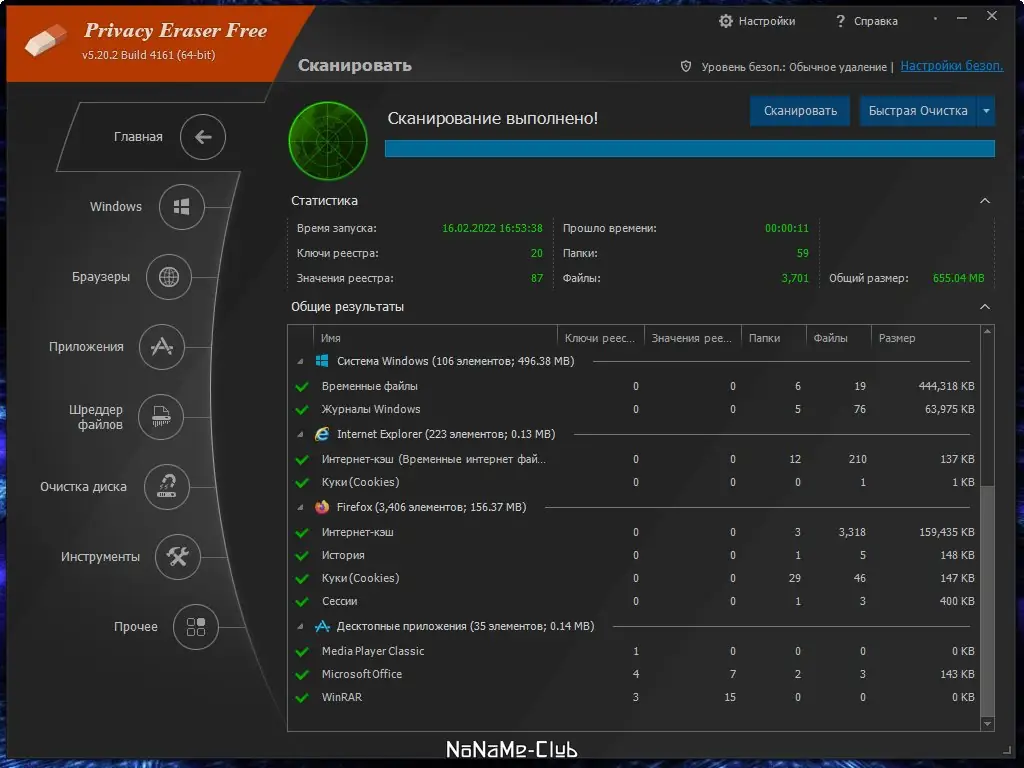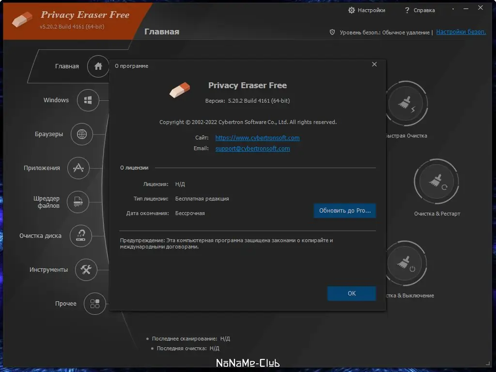 Privacy Eraser — это мощное приложение для комплексной очистки системы и защиты персональных данных. Оно удаляет следы активности в интернете, очищает историю браузеров, временные файлы, куки, данные автозаполнения и другие цифровые отпечатки. Программа помогает повысить конфиденциальность, ускорить работу компьютера и снизить риск утечки личной информации.