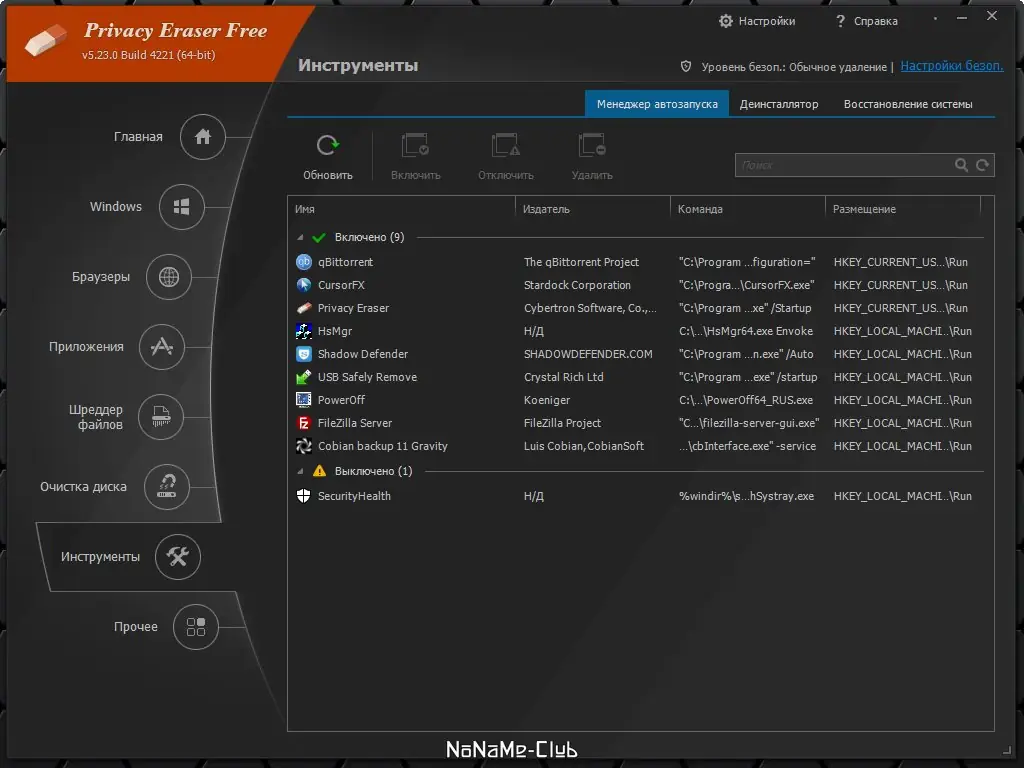 - Наличие встроенных инструментов для безопасного удаления файлов и управления автозагрузкой