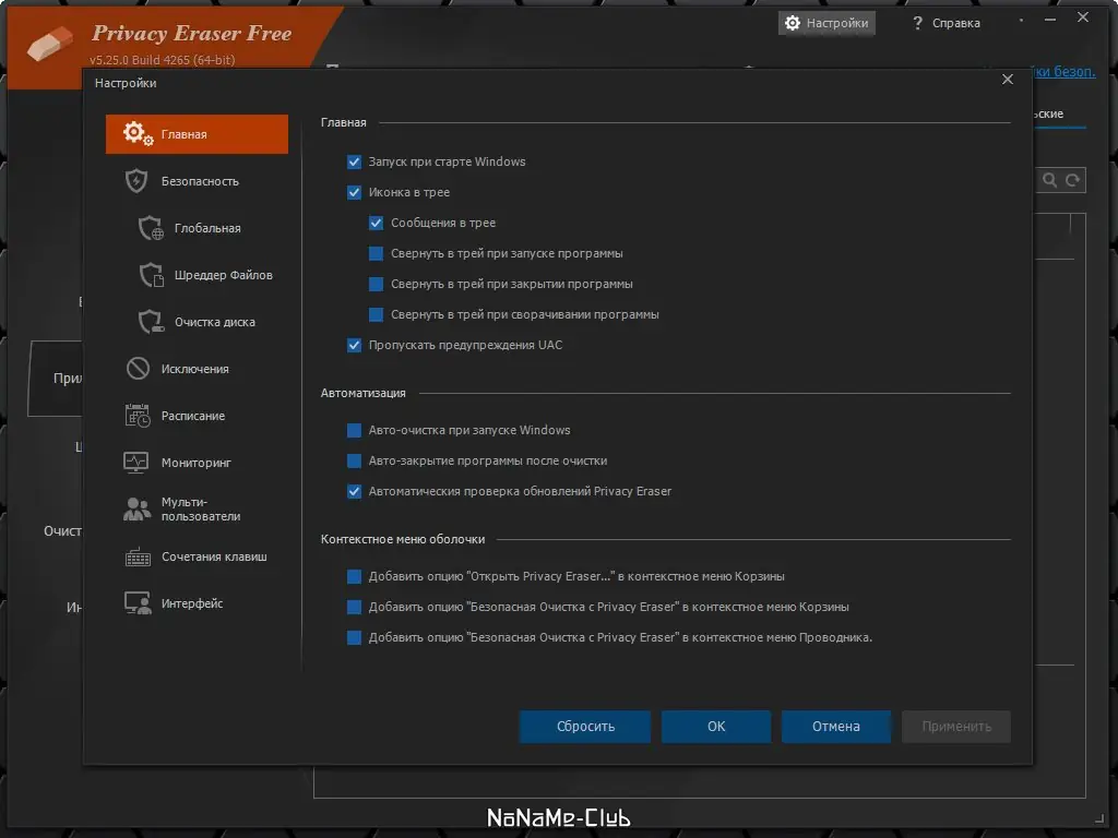 Работа с Privacy Eraser
