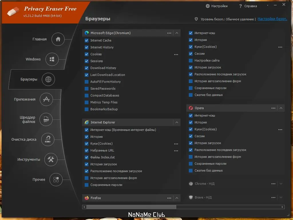 - Полная очистка истории браузеров, включая Google Chrome, Mozilla Firefox и Microsoft Edge