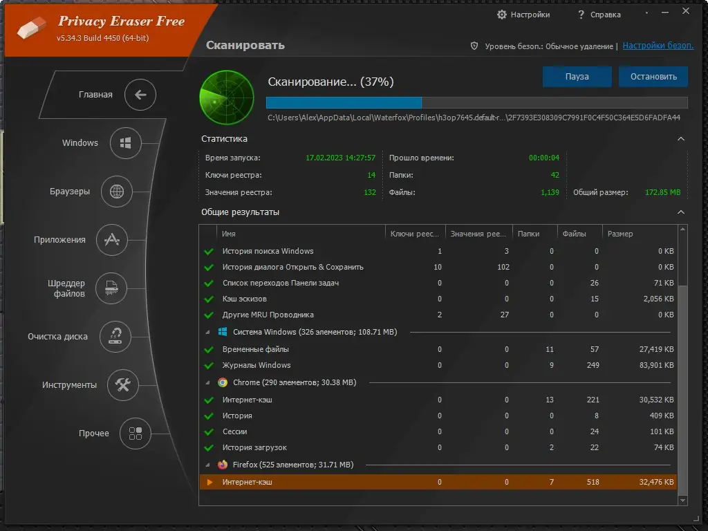 Privacy Eraser демонстрирует высокую эффективность в удалении следов пользовательской активности. Он обеспечивает быструю и безопасную очистку, поддерживает множество приложений и предлагает гибкие настройки. Программа стабильно работает на разных версиях Windows и не замедляет работу системы. Однако бесплатная версия имеет определённые ограничения, которые могут быть важны для продвинутых пользователей. Отсутствие продвинутых методов затирания и технической поддержки делает её менее подходящей для задач, требующих максимальной безопасности. Тем не менее, для повседневного использования инструмент остаётся одним из лучших решений в своём классе.