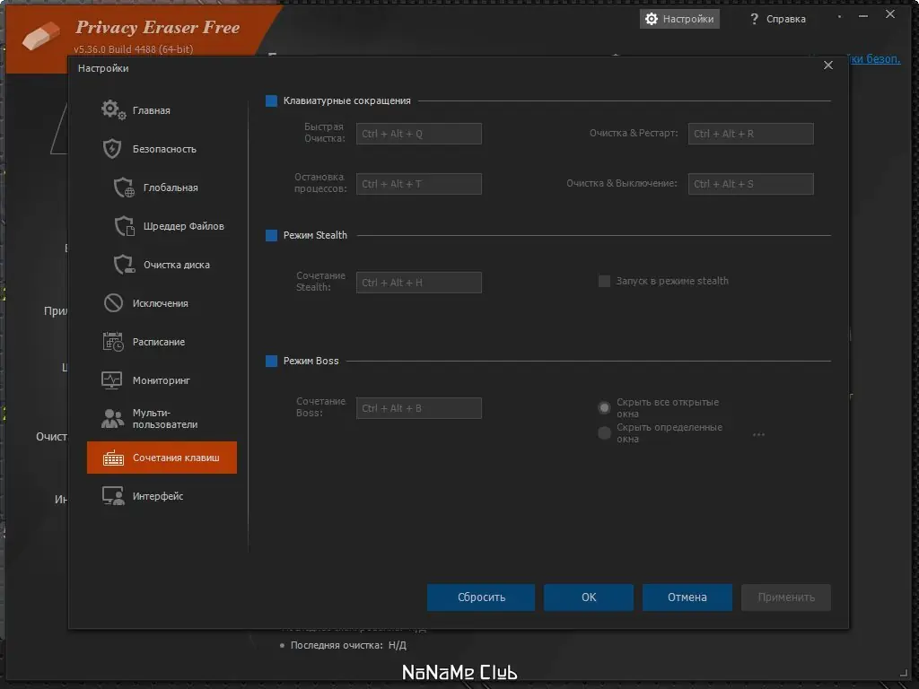 Работа с Privacy Eraser