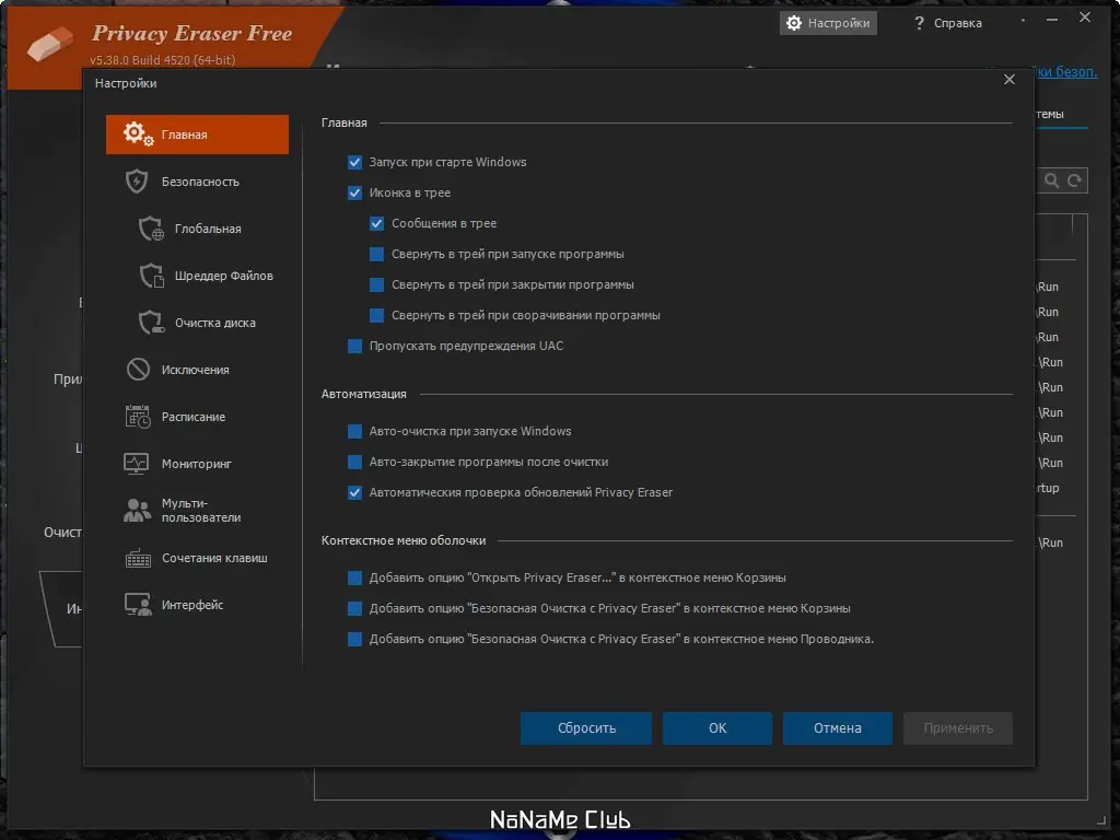 Работа с Privacy Eraser