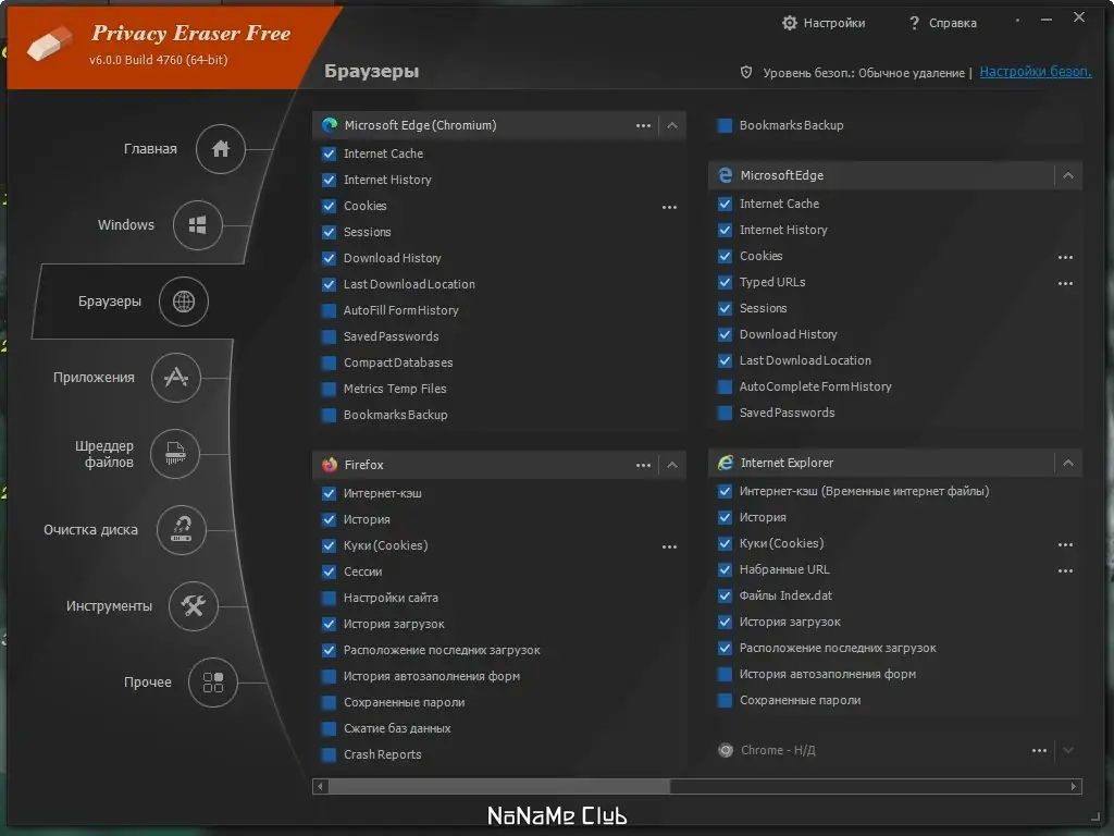 Privacy Eraser эффективно защищает личную информацию, устраняя любые следы, которые могут быть использованы для отслеживания поведения пользователя. Программа поддерживает все основные браузеры, включая Google Chrome, Mozilla Firefox, Microsoft Edge, Safari и Opera, а также большинство приложений, работающих под управлением Windows. Она очищает кэш, временные файлы, историю поиска, журналы Windows, записи в автозаполнении и даже содержимое буфера обмена, обеспечивая полную анонимность.