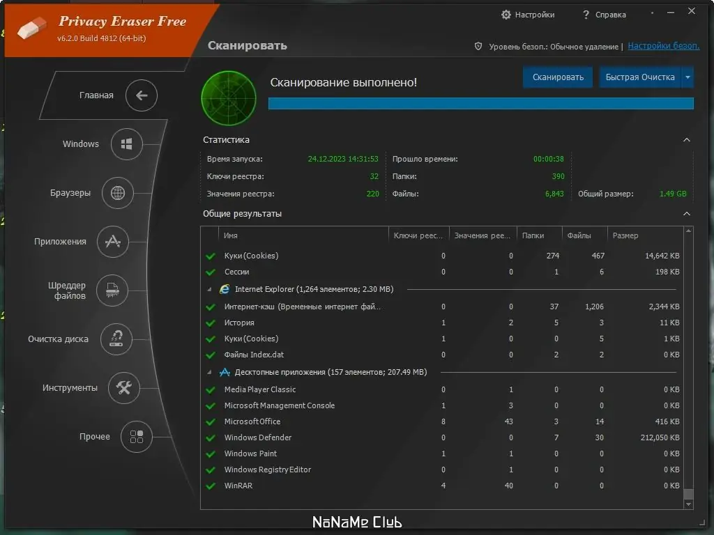 Privacy Eraser обеспечивает комплексную защиту личных данных путём тщательного сканирования и удаления цифровых следов, оставленных в ходе работы с операционной системой и сторонними приложениями. Программа поддерживает все основные браузеры, включая Google Chrome, Mozilla Firefox, Microsoft Edge и другие, удаляя историю посещений, сохранённые пароли, данные форм и временные файлы. Особое внимание уделено системным журналам, таким как история меню «Пуск», записи в буфере обмена, кэш DNS и файлы index.dat, которые часто используются для сбора информации о пользователе.