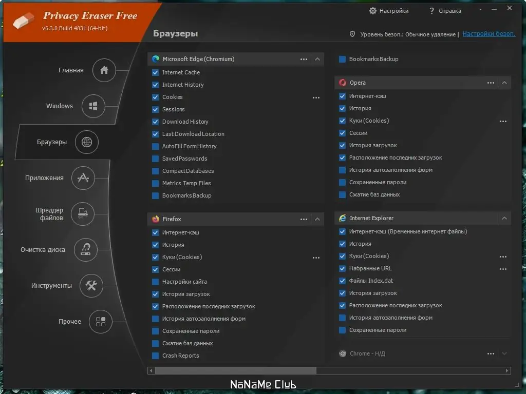 Privacy Eraser — это мощное решение для защиты приватности, которое полностью удаляет следы пользовательской активности в операционной системе и браузерах. Программа очищает кэш, куки, историю посещений, временные файлы и другие данные, которые могут раскрыть личную информацию. Утилита поддерживает широкий спектр приложений и системных компонентов, обеспечивая комплексную защиту конфиденциальности. С её помощью можно быстро и безопасно избавиться от цифрового следа, оставленного в ходе повседневной работы за компьютером.