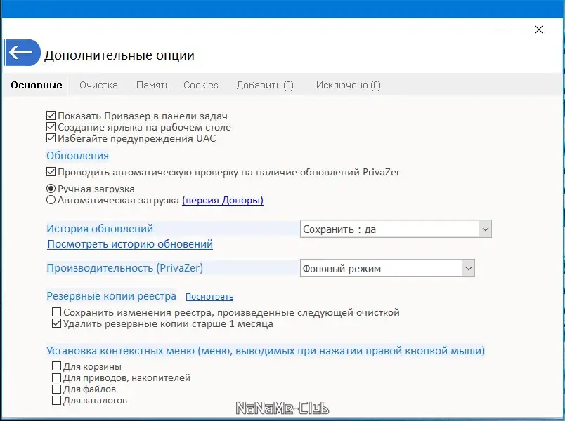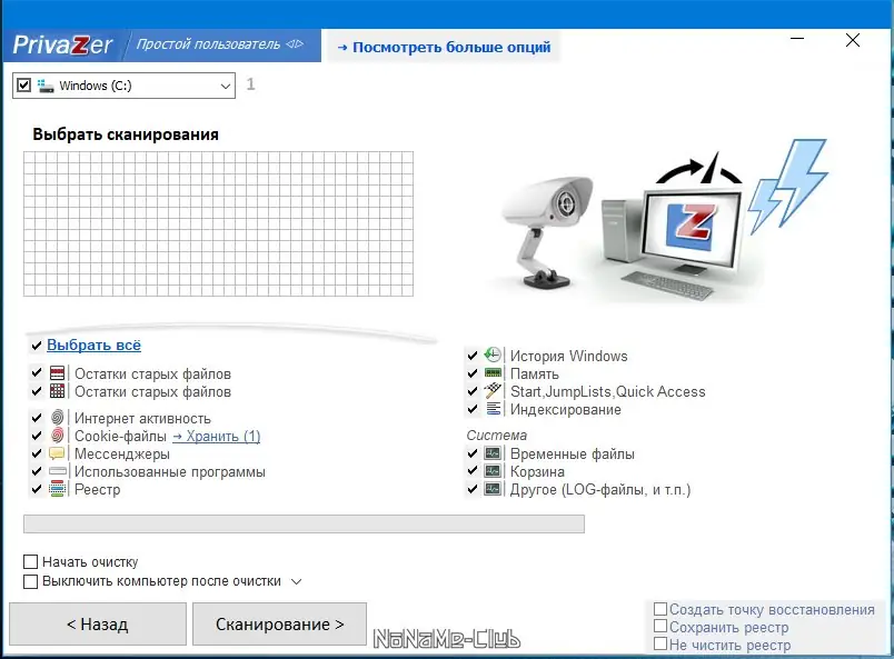 - Обеспечивает очистку временных файлов, cookies, истории браузеров и списков быстрого доступа.