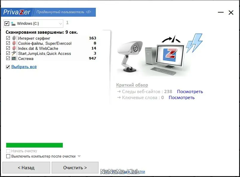 - Обнаружение и удаление следов в реестре, истории браузеров, cookies и временных файлах