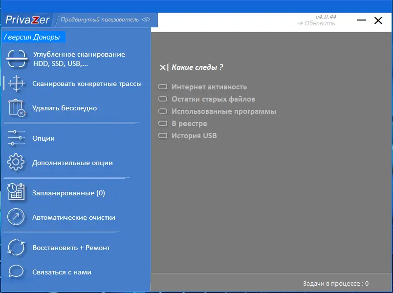 PrivaZer — это мощный инструмент для глубокой очистки системы от следов пользовательской активности. Программа сканирует жесткий диск, реестр, временные файлы и другие области, где могут сохраняться конфиденциальные данные, оставшиеся после работы в интернете, открытия документов или подключения внешних устройств. Она формирует детализированный отчет и позволяет безопасно удалить информацию с помощью специализированных алгоритмов, предотвращающих её восстановление. Утилита поддерживает SSD и магнитные диски, адаптируя методы очистки под тип носителя, и работает как в установочном, так и в портативном режиме, что делает её удобной для разных сценариев использования.