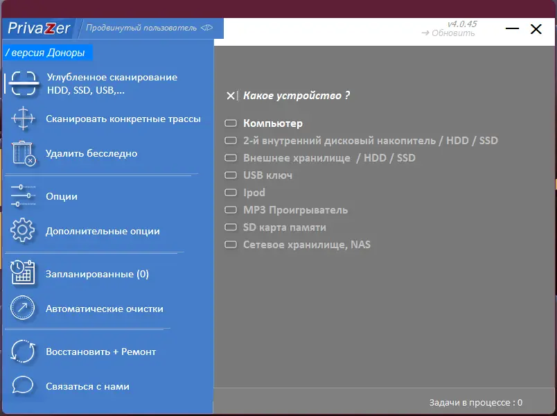 PrivaZer — это мощная утилита для очистки системы от конфиденциальных данных, оставленных после работы приложений и веб-браузеров. Программа проводит глубокое сканирование дисков и реестра, выявляя следы активности пользователя, и обеспечивает их безопасное удаление с защитой от восстановления.