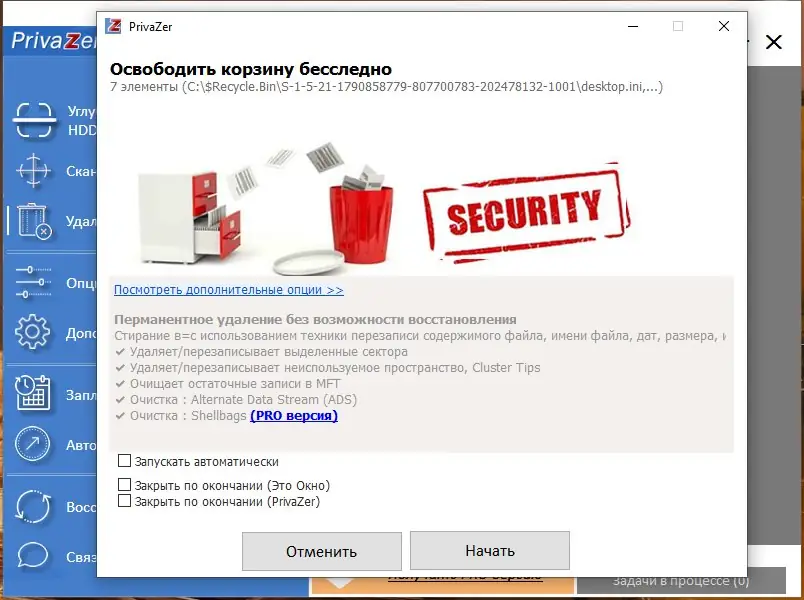 - Надёжное предотвращение восстановления файлов благодаря шредеру и адаптивной перезаписи.
