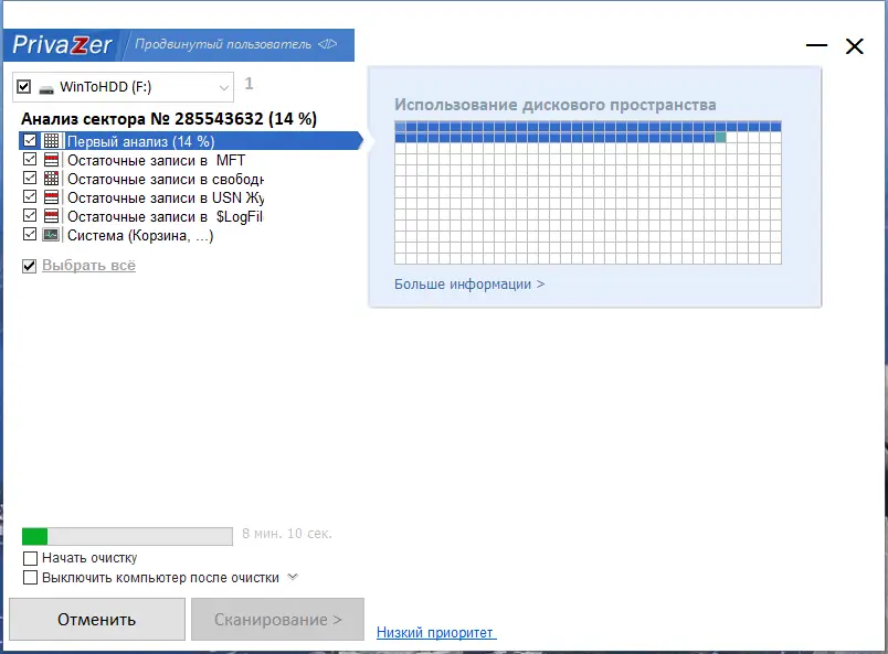 - Наличие продвинутых алгоритмов очистки, адаптированных под тип носителя.