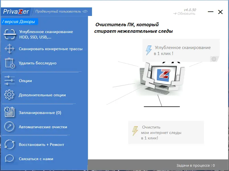 PrivaZer — это мощная утилита для очистки системы от следов пользовательской активности и защиты конфиденциальных данных. Программа сканирует реестр, временные файлы, куки, историю браузеров и скрытые области диска, предотвращая восстановление удалённой информации. Она подходит для тех, кто ценит приватность и хочет контролировать данные на своём устройстве.