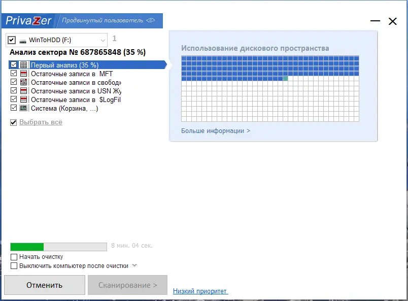 PrivaZer сочетает высокую точность анализа с надёжным удалением, обеспечивая защиту от восстановления конфиденциальной информации.