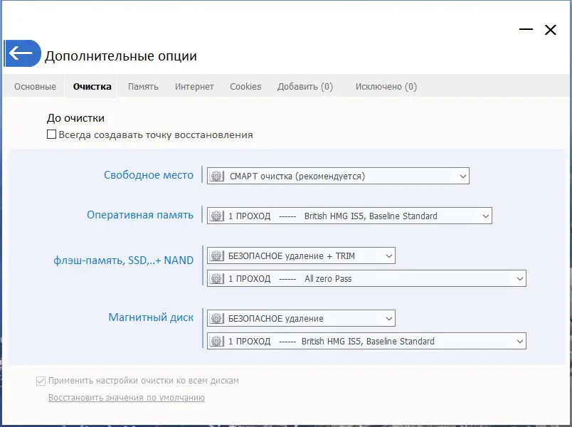- Поддержка smart-очистки для cookies, Prefetch, jumplists и других компонентов