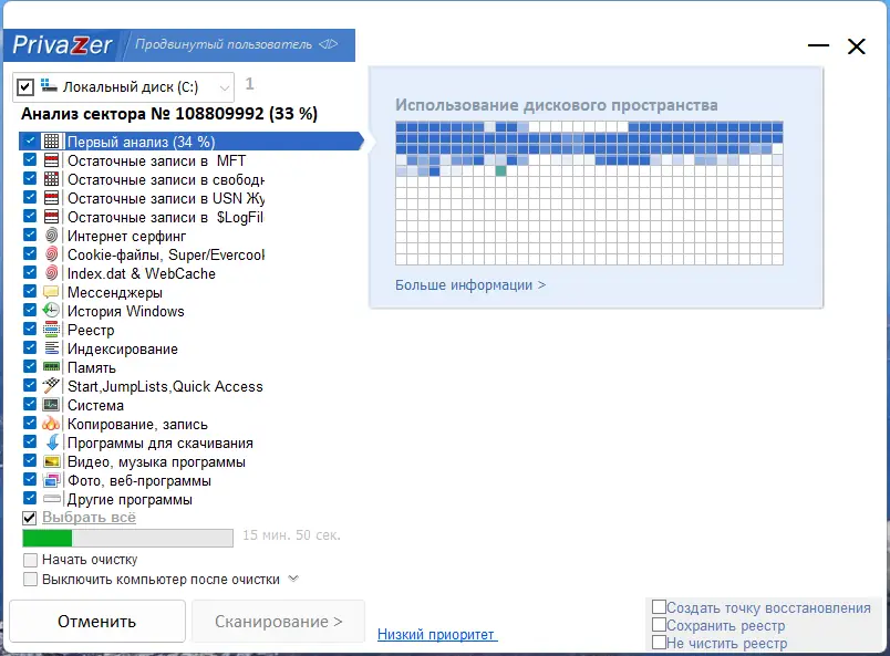 PrivaZer представляет собой инструмент глубокой очистки, ориентированный на обеспечение приватности и безопасности при работе с персональным компьютером. Он способен находить и удалять следы активности, которые стандартные средства Windows не затрагивают. Программа поддерживает как локальные диски, так и подключаемые устройства, обеспечивая комплексную защиту от восстановления удалённой информации.