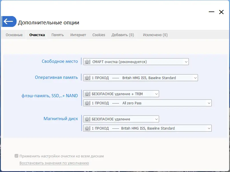 - Автоматическое определение типа носителя и адаптация методов очистки для SSD и HDD.