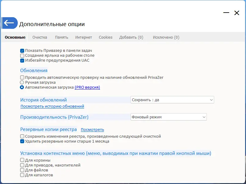 - Поддерживает smart-очистку cookies, списков быстрого перехода и Prefetch без потери закреплённых элементов.
