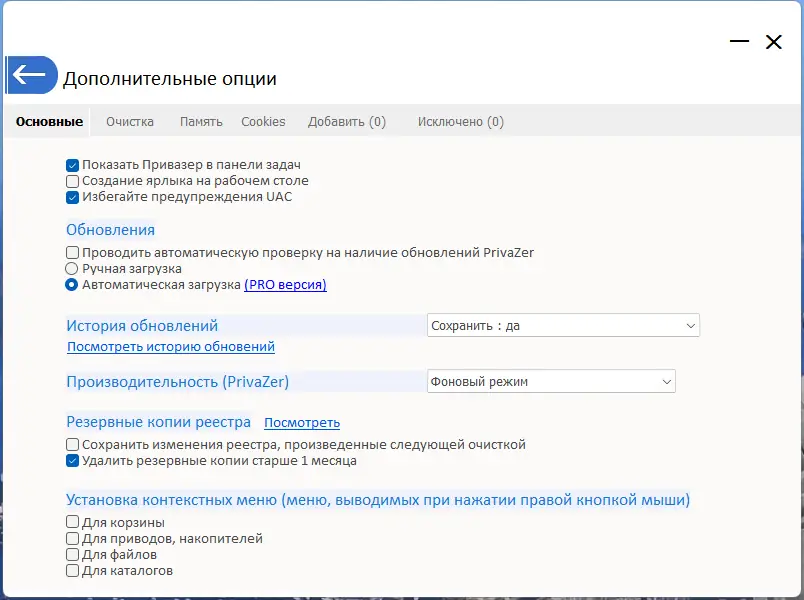 - Поддержка smart-очистки cookies, prefetch и jump lists с сохранением нужных элементов.