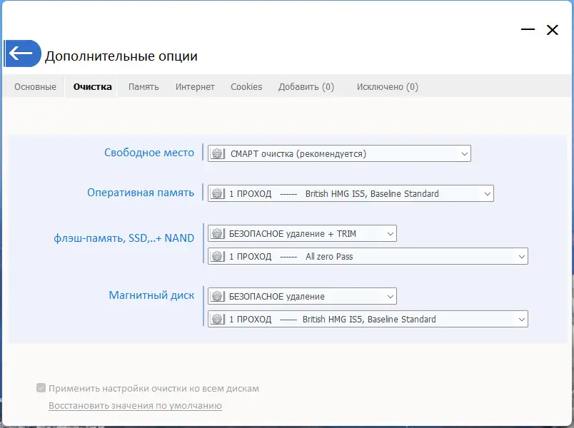- Поддержка SSD и автоматическая адаптация методов очистки под тип носителя.