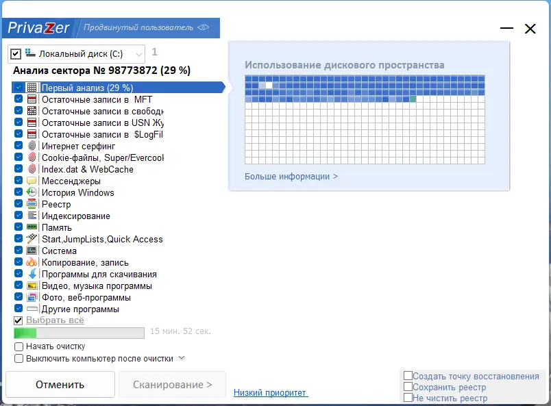 PrivaZer сочетает высокую эффективность очистки с гибкостью настроек и безопасностью выполнения операций.