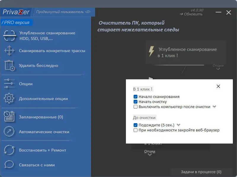 PrivaZer сочетает высокую эффективность очистки с безопасностью и контролем над процессом — каждый шаг пользователя остаётся под его полным контролем.