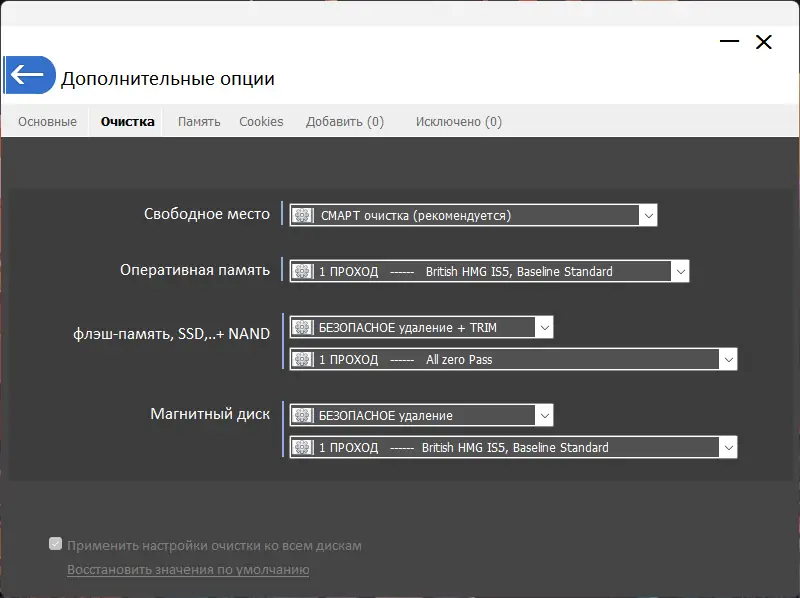 - Обеспечивается интеллектуальная очистка свободного места с учетом уже обнуленных секторов, что значительно ускоряет процесс.