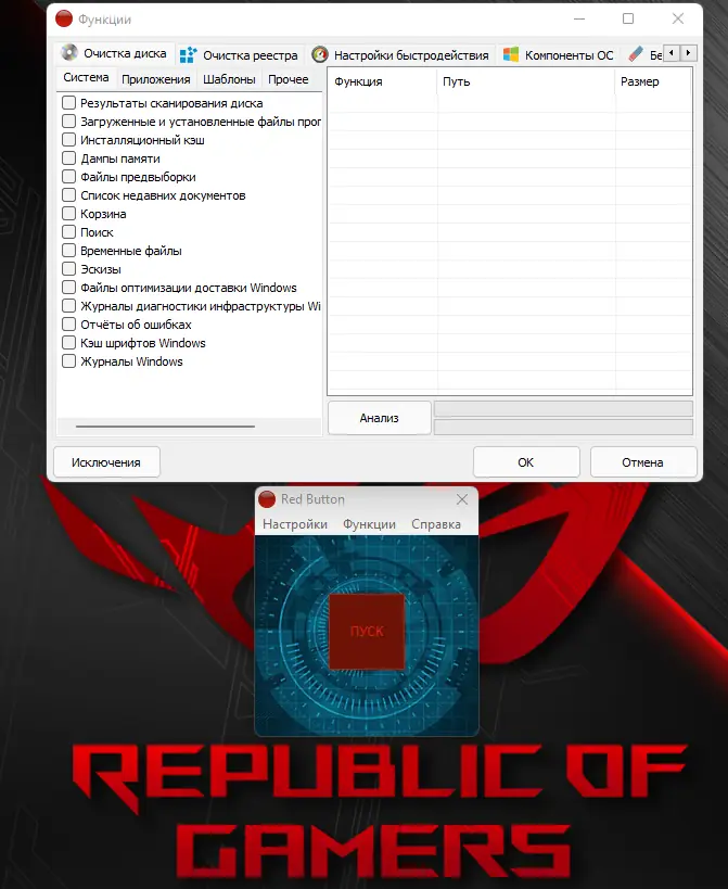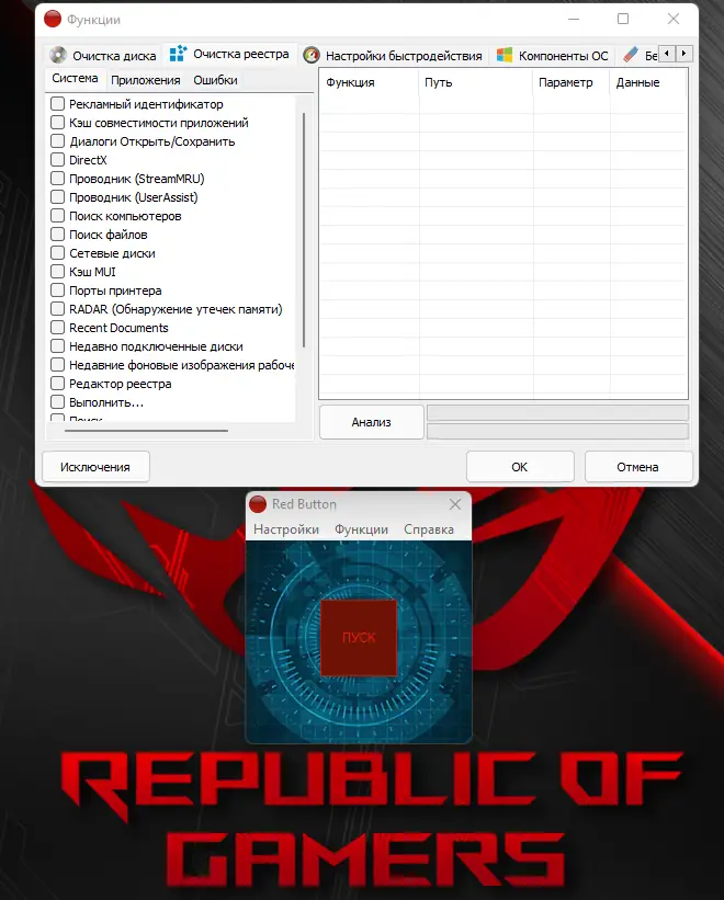 - Red Button способна исправлять ошибки реестра, предотвращая сбои и повышая стабильность системы.