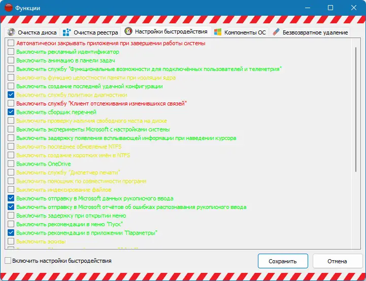 - Позволяет изменить скрытые настройки системы для повышения быстродействия