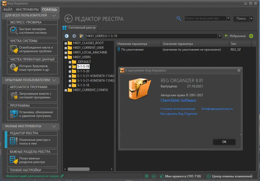 Reg Organizer — это мощный инструмент для обслуживания и оптимизации системного реестра Windows, сочетающий в себе функции твикера, редактора реестра и деинсталлятора с глубокой очисткой. Программа помогает устранять ошибки, ускорять работу системы и полностью удалять ненужные приложения вместе с их остаточными файлами и записями.