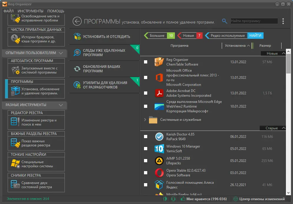 Reg Organizer — многофункциональный твикер для обслуживания системного реестра Windows. Программа позволяет очищать, редактировать и оптимизировать реестр, удалять приложения с остатками, управлять автозагрузкой и настраивать операционную систему под индивидуальные требования. Благодаря расширенным инструментам, она подходит как новичкам, так и опытным пользователям, стремящимся к стабильной и быстрой работе системы.