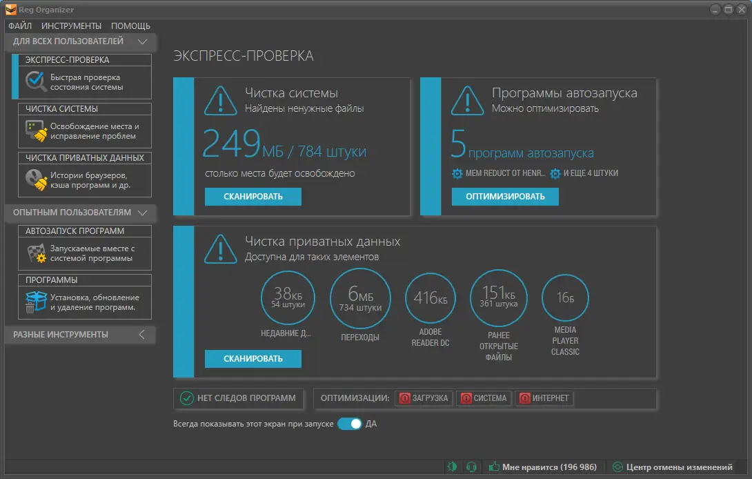 Reg Organizer — это мощный инструмент для обслуживания и оптимизации системного реестра Windows. Программа объединяет функции чистки, редактирования, дефрагментации и глубокого удаления программ, обеспечивая стабильность и высокую производительность системы.