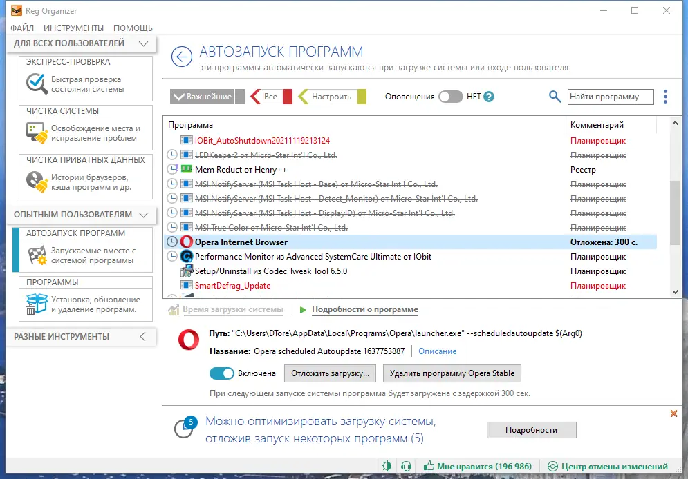 - Расширенный менеджер автозагрузки для оптимизации времени запуска Windows.